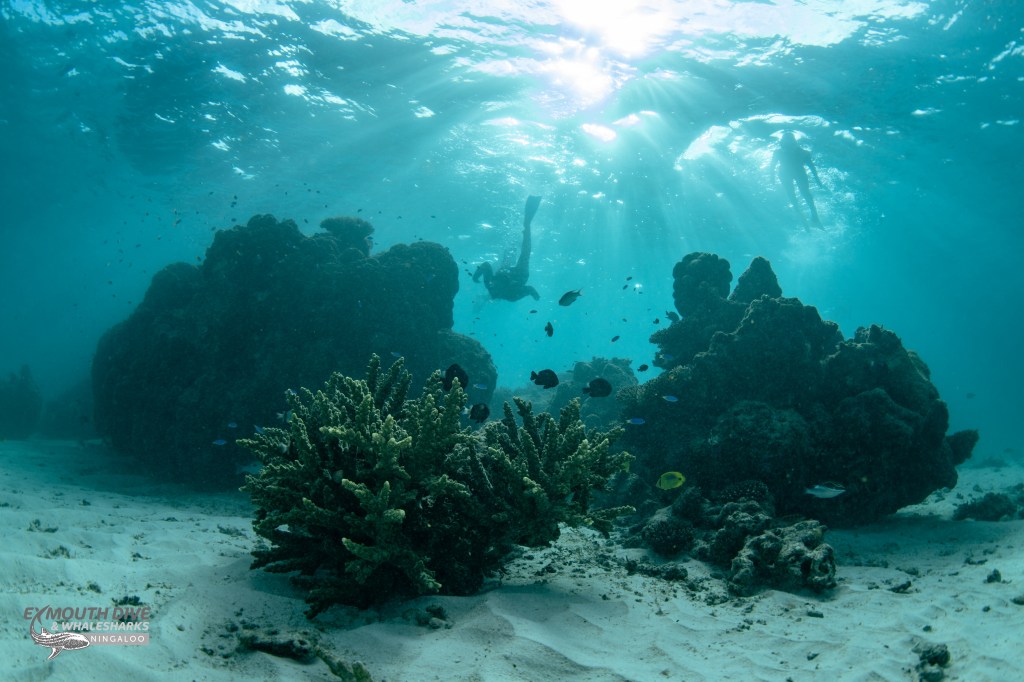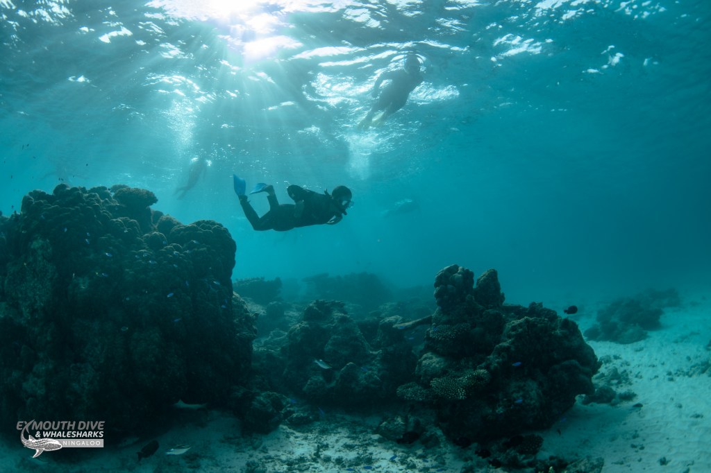 De junio a noviembre, las ballenas jorobadas migran a lo largo de la costa de Ningaloo. Si bien se pueden ver desde la playa, o desde el Faro de Vlamingh Head, una de las mejores experiencias que pueden tener es verlas directamente dentro del océano, desde un bote.