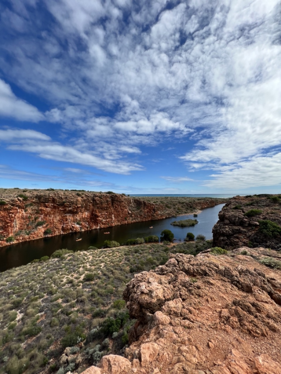 Yardie Creek Gorge es una impresionante garganta (grieta) situada dentro del parque nacional Cape Range. Una de las mejores maneras de explorarla es haciendo una caminata a lo largo de su borde, ya que se puede disfrutar de las vistas panorámicas del cañón y el arroyo.